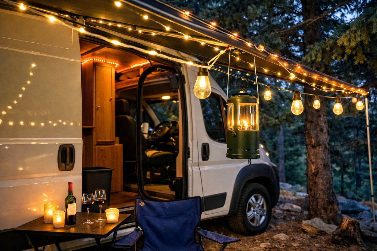 Освещение делает кемпинг по-настоящему уютным. Компактные LED-лампы с регулировкой цветовой температуры (тёплый/холодный свет), встроенные ленты и гирлянды с датчиками движения превращают стоянку в атмосферное пространство после заката.