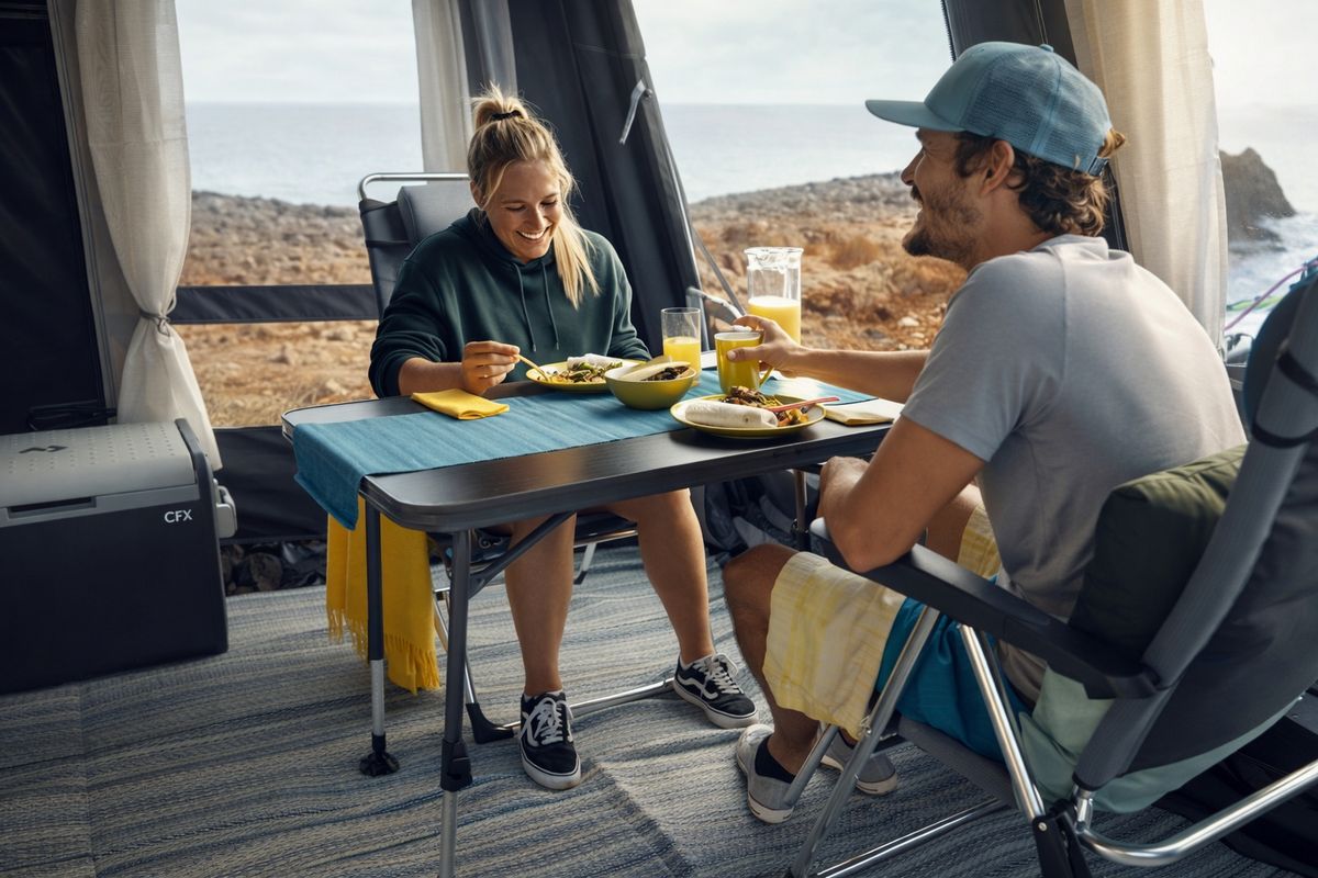 Модели Dometic GO или аналогичные от Frankana компактно складываются, мало весят и выдерживают серьёзную нагрузку. Добавьте столик и вы получаете идеальное место для трапез, игр или отдыха у костра.